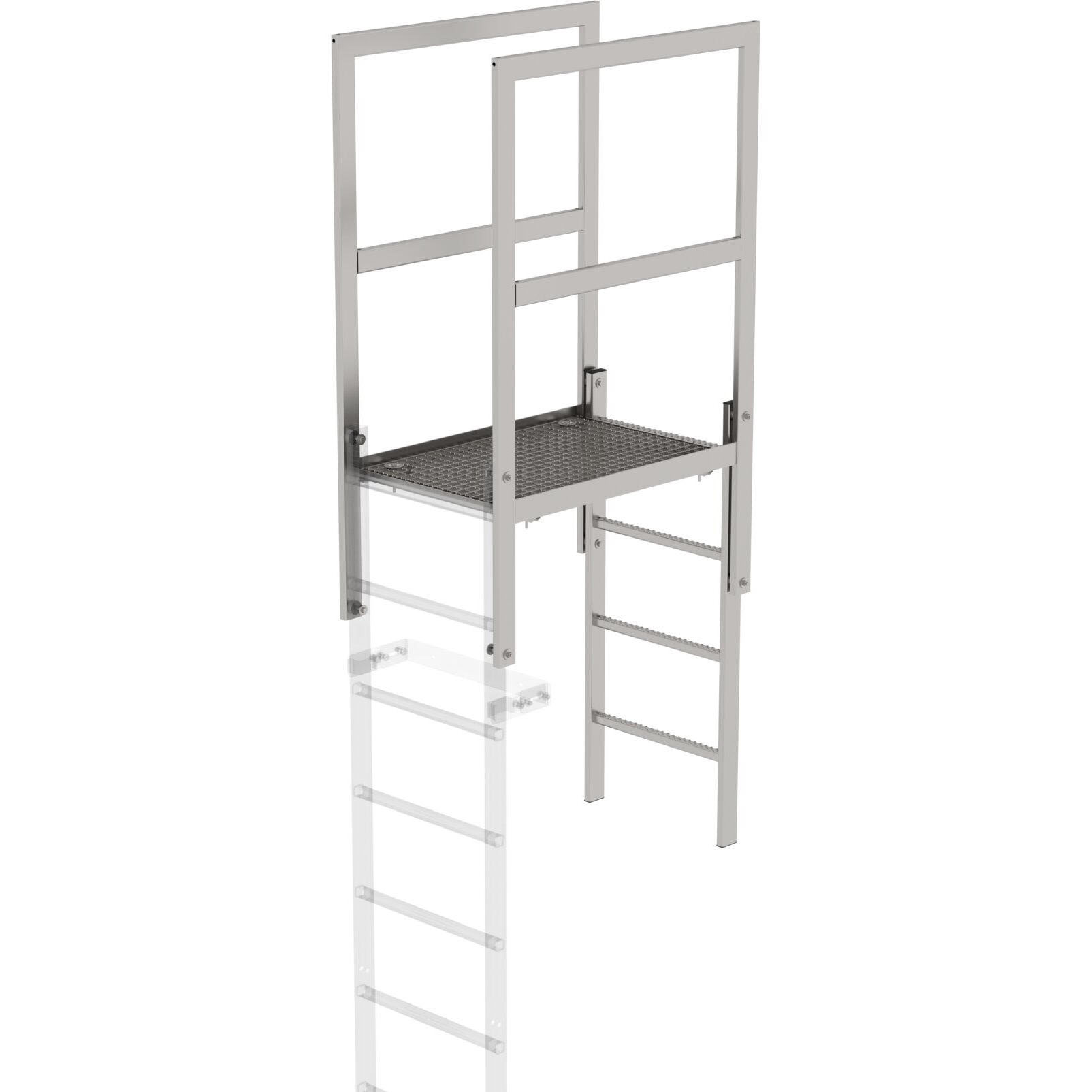 В случае, если на выходе зазор превышает показатель в 75 мм, требуется дооснастить лестницу ступенью выхода (арт. 62966). В нашем магазине представлены дверцы безопасности (арт. 63502) и друге дополнения.